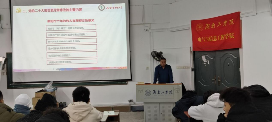 刘海波讲述了中国共产党的发展史,特别是党的过去5年工作和新时代10年的伟大变革,以及新时代新征程中国共产党的使命任务。他强调要把握中国式现代化的中国特色和本质要求,深刻领会开辟马克思主义中国化时代化新境界。要求学生全面精准学习党的二十大精神,认真做好学习宣传。