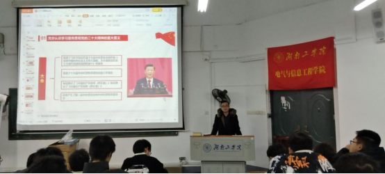 俞斌对党的二十大精神主要内容进行了讲解,并讲述了学习宣传贯彻党的二十大精神的时代背景和历史意义。他指出,作为当代大学生,应该努力学习理论知识、了解中国伟大成就、把握党的二十大精神的核心思想和丰富内涵。