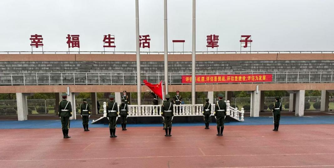 7点10分,全体人员准备就位。7点15分,升旗仪式正式开始。在全体师生的注目礼下,五星红旗伴随着庄严的国歌冉冉升起,随风飘扬。