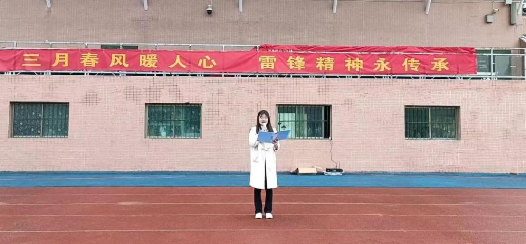 学生代表通信2202班熊思琪同学发言,她倡导同学们弘扬雷锋热爱党、热爱祖国、热爱社会主义的崇高理想和坚定信念。作为新时代的大学生,我们要发挥雷锋的钉子精神,把挤劲和钻劲投入服务,投入到目前的学习生活中。不断加强学习,立足自身,发挥主人翁意识,为学校审核评估工作贡献自己的力量。
