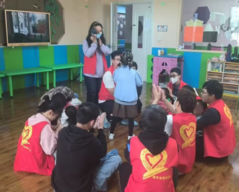 活动开始后,在康复中心老师的介绍和带领下,志愿者们来到各自的负责班级。在温暖如春的教室里,志愿者与小朋友们一起互动。有的陪孩子们做一些简单的游戏,如老鹰抓小鸡、丢手绢等,并协助进行康复训练;有的进行绘本活动,和孩子一起画画、唱歌、讲故事;有的对孩子的康复与教育等方面耐心进行辅导,细心、耐心地为小朋友们解答疑惑,帮助他们完成学习任务。在整个过程中,志愿者与小朋友们逐渐地熟悉起来,大家共同度过了一个既开心又富有意义的上午。