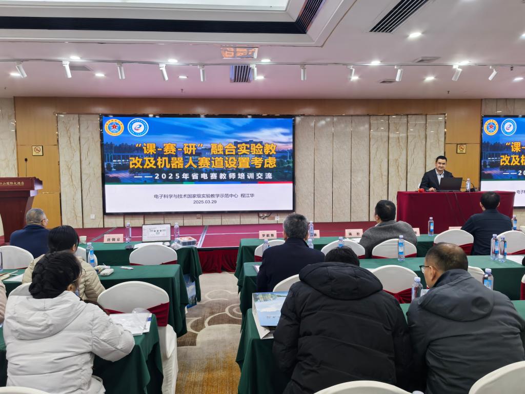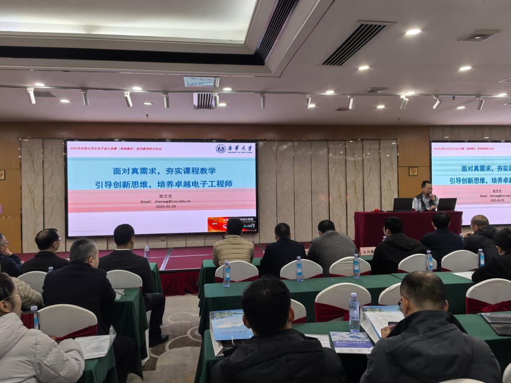 会上,国防科技大学程江华教授、南华大学陈文光教授、湖南理工学院陈松副教授等五位电赛专家分别作专题报告,分享竞赛指导经验与学科建设成果。