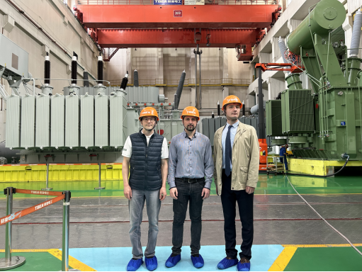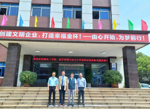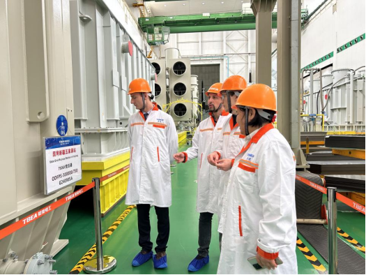 4月28日,电气与信息工程学院副院长何西陪同代表团前往特变电工衡阳变压器有限公司和金杯电工衡阳公司电缆有限公司参观考察。在企业技术负责人的引导下,代表团实地观摩了变压器制造生产线,详细了解中国高端装备制造业的技术标准与生产流程。双方就中俄电力设备技术标准差异、联合研发可行性等议题进行了初步交流。