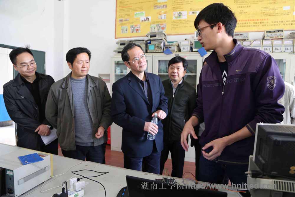 4月12日上午,省教育厅副厅长葛建中率高教处处长唐利斌、科技处处长吴跃辉、学位办主任余伟良、学生处处长熊俊钧、国际处处长王红冰,高教处科长彭玮婧一行7人莅临best365指导评建工作,在校长张力等陪同下参观我院实验中心,