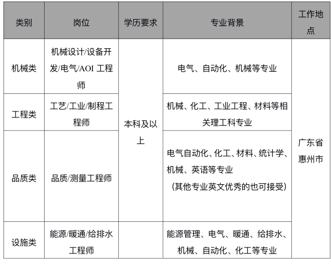 【广东惠州】伯恩光学(惠州)有限公司招聘信息
