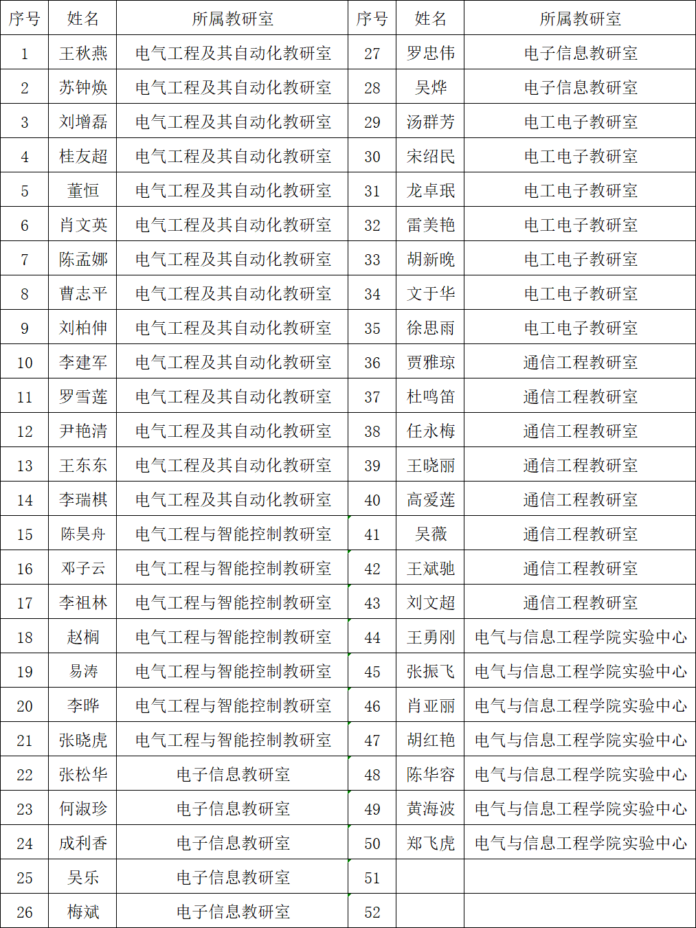 电气与信息工程学院专任教师