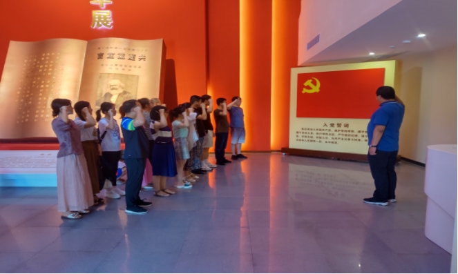 走进衡阳党史馆,在党委书记俞斌的领誓下,同志们面对鲜红的党旗重温了入党誓词。