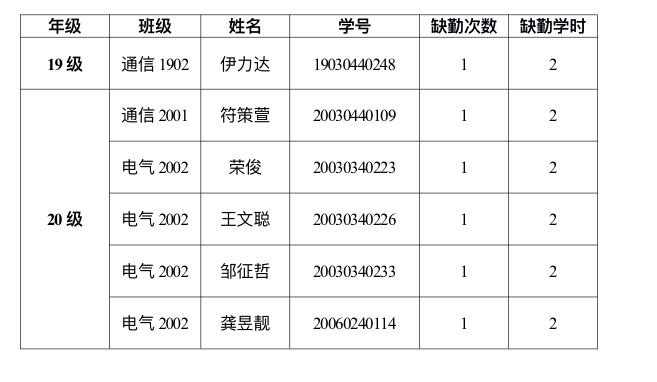 电气与信息工程学院 2021-2022-1学期第九周课堂考勤表情况通报