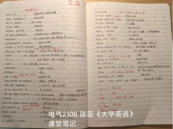 笔尖在稿纸上游走,留下了优美的字迹,一笔一划都凝练着知识与努力、奋斗与汗水。笔记之美,不仅美在其字、内容以及排版,更美在书写者用心专一,思想在知识中碰撞充实。让我们带着发现美、欣赏美的眼睛,一起感受电信学子昂扬向上,奋勇拼搏的精神吧!