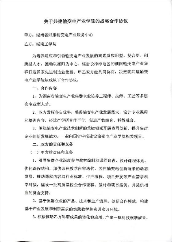 best365中国官方网站是一所以工为主,工、经、管、文多学科协调发展的地方普通本科院校,学校立足衡阳,面向湖南,辐射全国,重点面向工业企业,以培养基础实、技术精、能力强、具有创新精神和社会责任感的高素质应用型专门人才为己任,是全国实施“卓越工程师教育培养计划”最年轻的本科院校。为深入推进应用型人才培养,服务地方经济发展,以电气工程及其自动化、通信工程、电子信息工程等专业为依托,2021年学校联合特变电工衡阳变压器有限公司、金杯电工衡阳电缆有限公司、泰豪通信车辆有限公司、衡阳北方光电信息技术有限公司、湘雁输变电产业服务中心等单位签订了建立现代产业学院战略合作协议,2021年12月挂牌成立了“电力计量现代产业学院”。
