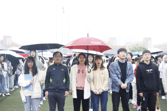 仪式上,全体师生怀着敬仰的心情唱响《歌唱祖国》,歌颂祖国大地,唱出对党的满腔热情;唱出了不忘初心、牢记使命的时代责任;唱出了实现中华民族伟大复兴的迫切希望。