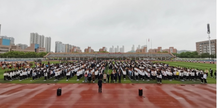4月26日,建工学院在北操场举行升旗仪式,将党史学习课堂“搬”至田径场。