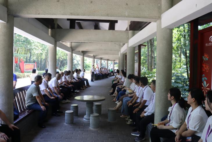 在实践教学环节,校领导与全体学员在韶山毛泽东广场,怀着无比崇敬的心情,向毛泽东同志铜像敬献花篮、行鞠躬礼,瞻仰毛泽东同志铜像、重温入党誓词,深切表达对伟人的缅怀敬仰;在毛泽东同志纪念馆、毛泽东同志故居、上屋场叩问初心,共同感受伟人为国为民担当的情怀。