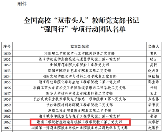 近日,教育部公布全国高校“双带头人”教师党支部书记“强国行”专项行动团队名单,best365智能制造与机械工程学院教工第三党支部成功入选。