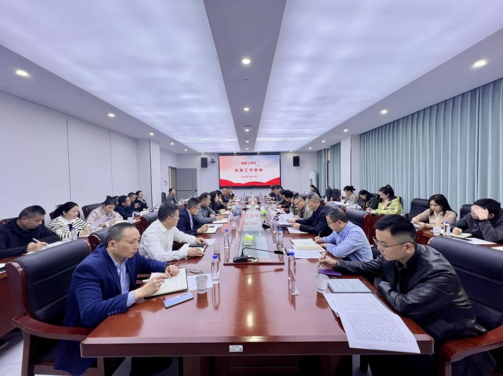 10月27日,学校召开党务工作例会,会议由党委委员袁勤主持,党委副书记何建雄出席会议。党务工作部门负责人、各二级党组织书记、二级学院党委副书记参加会议。