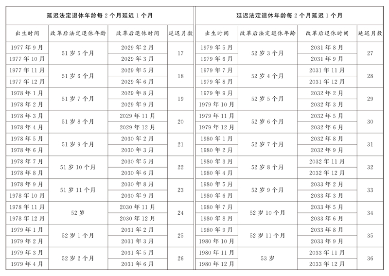 2.原法定退休年龄五十五周岁的女职工延迟法定退休年龄对照表