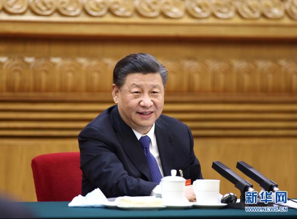 3月5日,中共中央总书记、国家主席、中央军委主席习近平参加十三届全国人大四次会议内蒙古代表团的审议。(新华社记者 谢环驰/摄)
