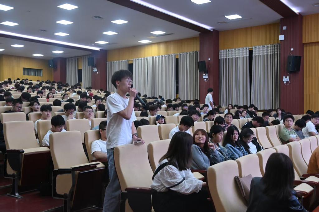 在讲座互动答疑环节,罗敏聚焦学生职业发展的核心困惑,以自身的教育经验与行业洞察回应现实难题。针对“是否应押注考公而放弃秋招”这一关乎就业抉择的关键问题,他结合当下就业形势,剖析不同选择的机会成本与发展前景;面对“考研失利后调剂与二战”的两难困境,从个人目标、经济成本、心理承受力等维度给出理性建议;围绕“创业隐性能力”,深入解读资源整合、风险预判、抗压韧性等非显性要素的重要性;针对“学科竞赛与科研能力平衡”的矛盾,提出以兴趣为导向、以项目为纽带的融合发展路径,为在场学子提供了兼具理论高度与实践价值的指导。