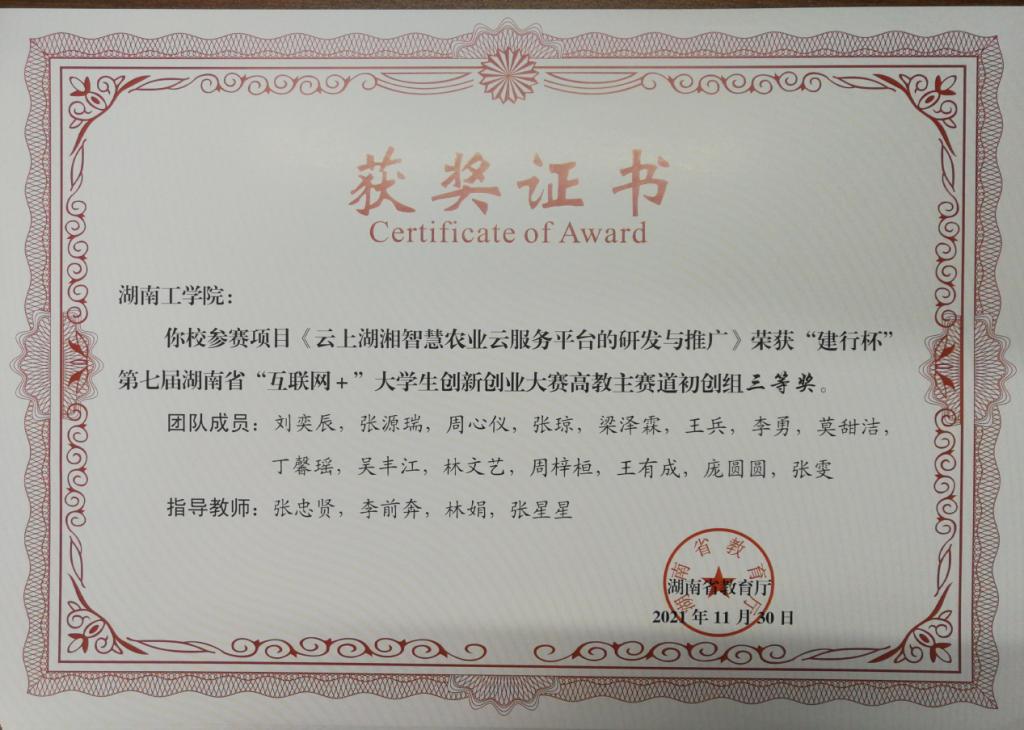 省赛三等奖:云上湖湘智慧农业云服务平台的研发与推广