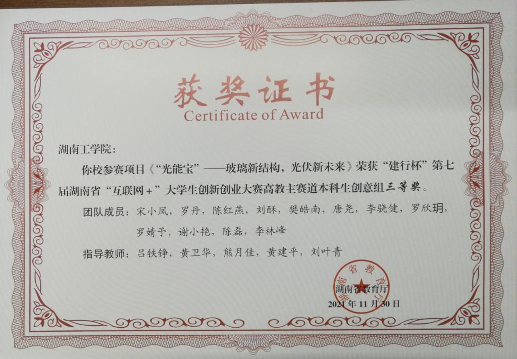 省赛三等奖:光能宝--玻璃新结构 光伏新未来