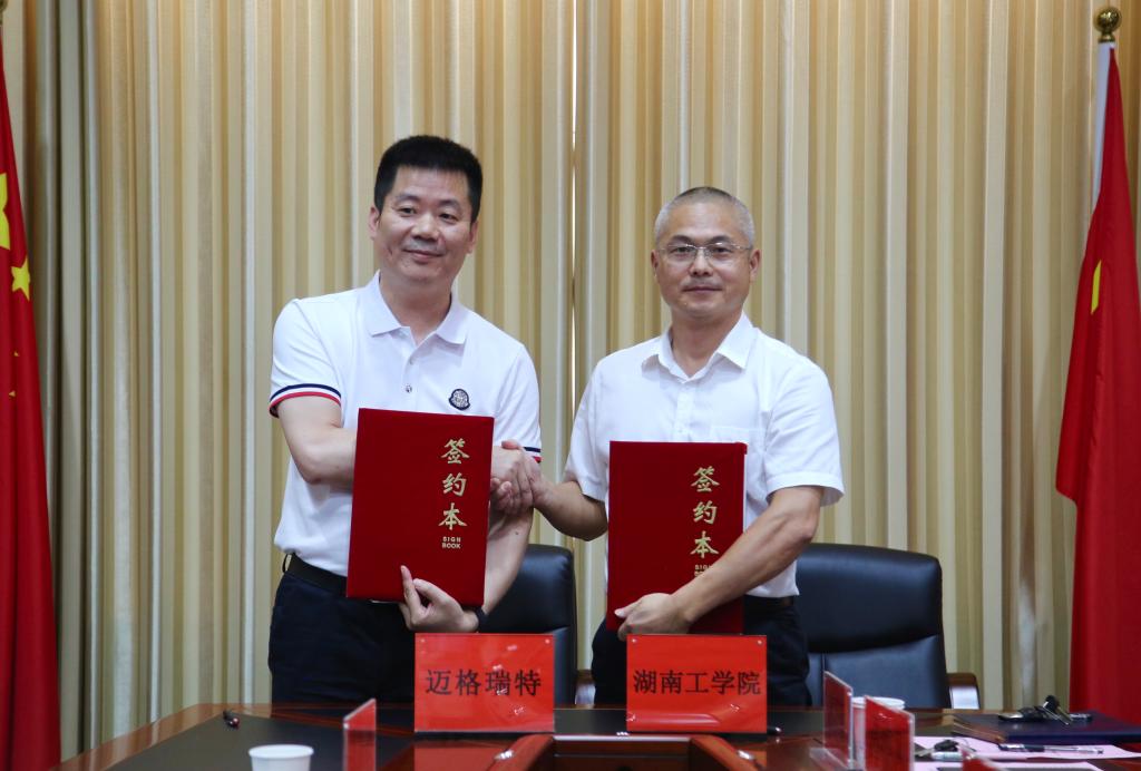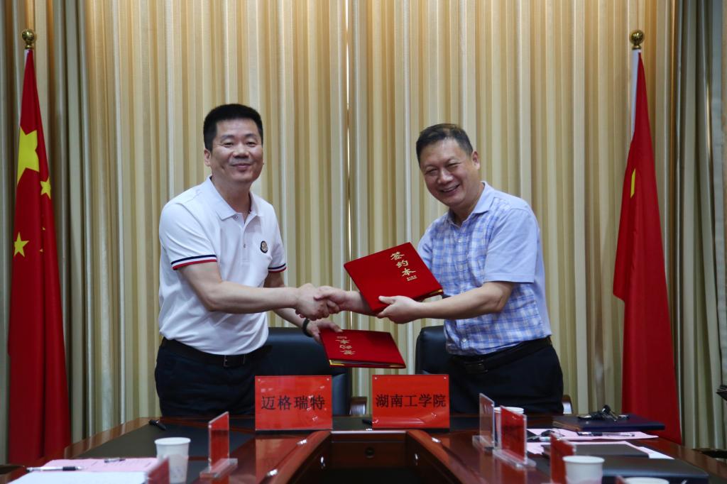 在与会领导和嘉宾的共同见证下,best365中国官方网站校长罗建华与湖南迈格瑞特物联科技有限公司签署了校企战略合作协议。校党委副书记张平代表学校签署了捐赠协议。