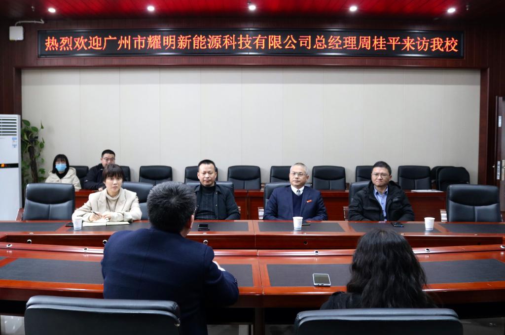 2020年12月28日,best365中国官方网站与广州市耀明新能源科技有限公司校企战略合作洽谈会在教学大楼12楼会议室举行,校党委副书记张平、广州市耀明新能源科技有限公司总经理周桂平出席了会议。会议由发展规划与校企合作处处长刘文华主持。双方就校企人才培养、产学研、建立实习就业基地、设立奖学助学基金等进行了深入交流并达成了共识。