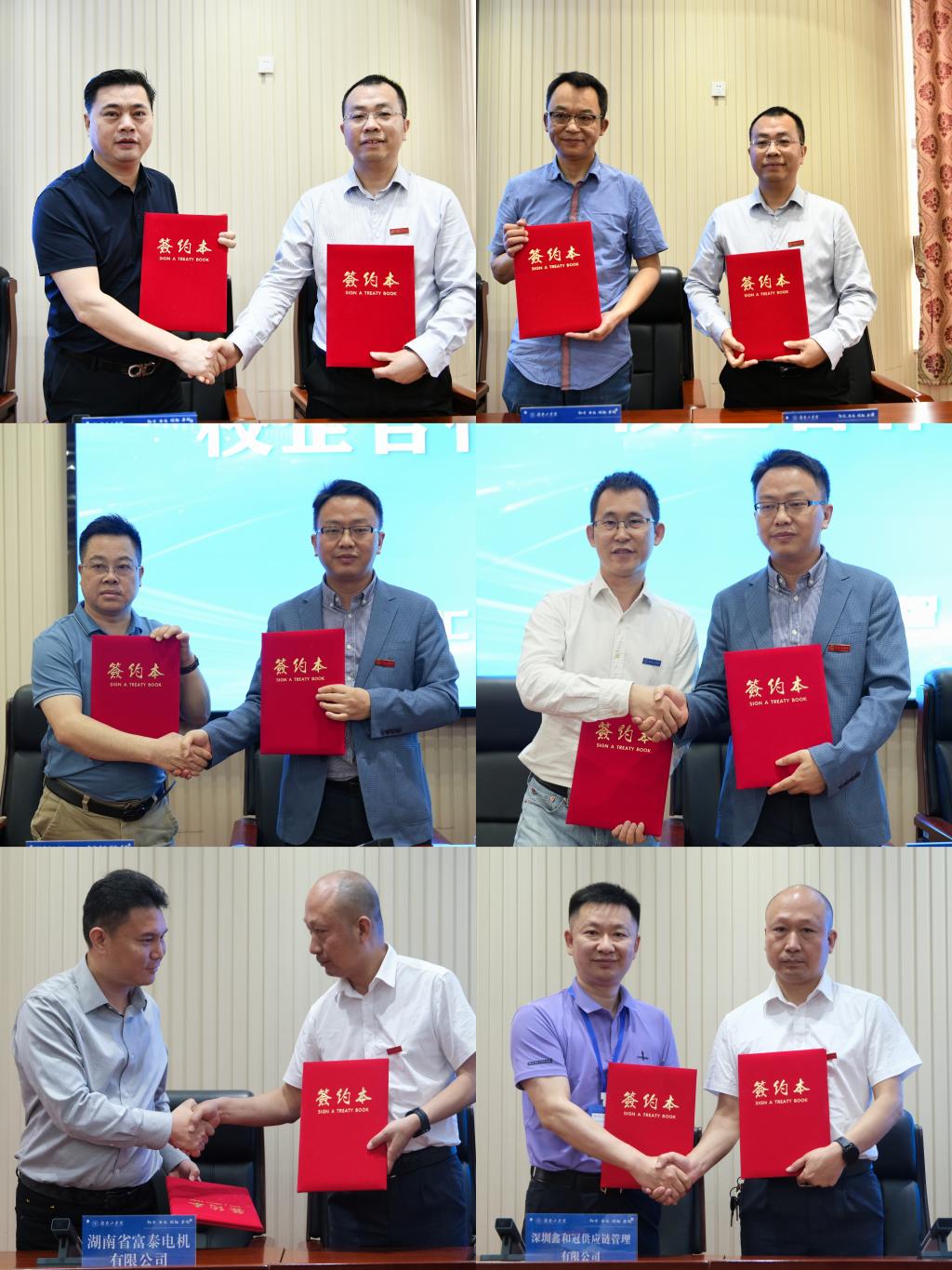 会上,学校与宁乡市人民政府签订了战略合作协议。各二级学院共15个科技成果转化项目与相关合作企业进行了现场签约。