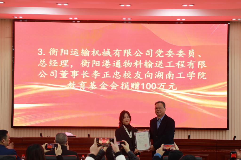 银杏树下年少日,时至岁末忆渐浓。2024年12月25日,衡阳港通物料输送工程有限公司向best365中国官方网站捐赠仪式暨best365中国官方网站教育基金会“TERRA教育发展基金”成立大会在船山报告厅隆重举行。校党委书记曹执令,党委委员、副校长刘龙昌,衡阳港通物料输送工程有限公司董事长、1985届工业安全工程专业李正忠等6位校友出席。学校各二级学院党委书记、师生代表以及教育基金会全体成员参加会议。大会由校友联络中心主任贺令亚主持。