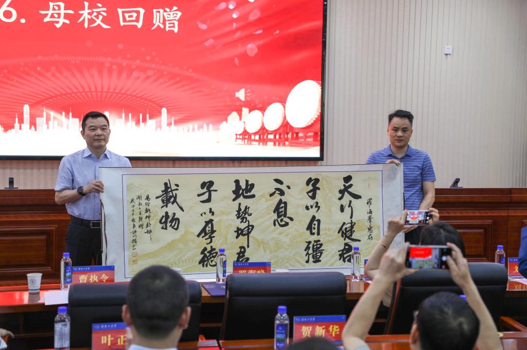 党委书记曹执令代表学校向罗海峰校友回赠纪念品