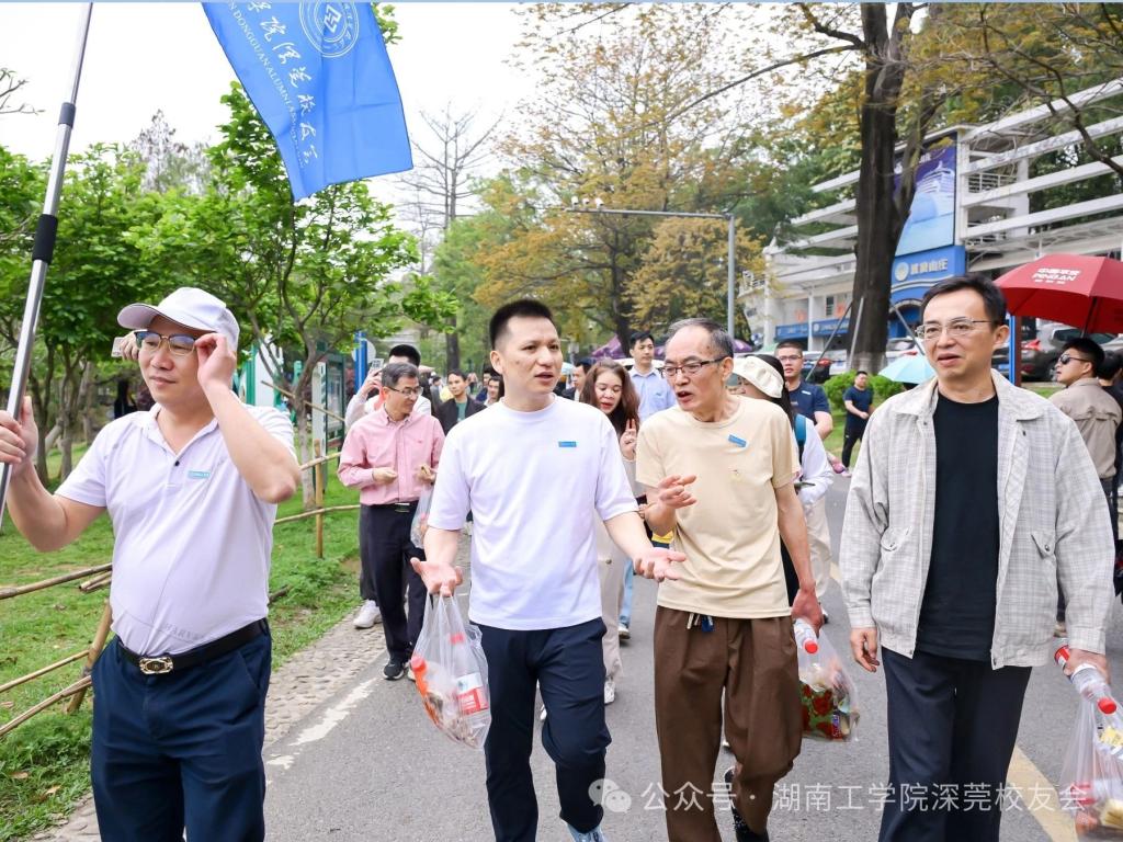 下午两点,校友们陆续抵达松湖烟雨集合点,打卡并领取校友会精心准备的能量补给包。大家热情高涨,互相问候,现场洋溢着欢声笑语。