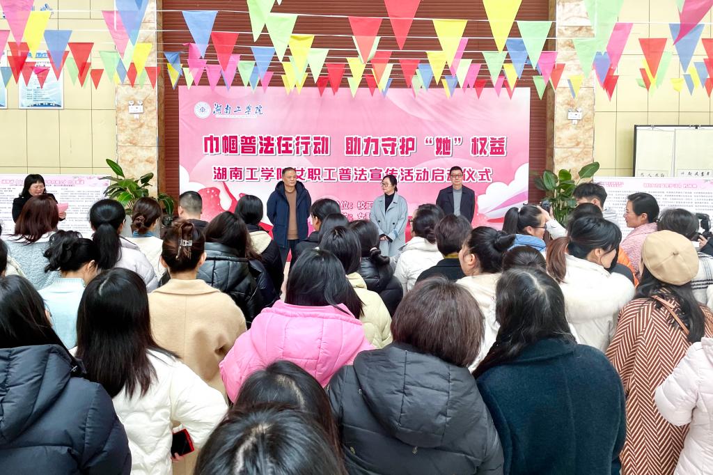 人间三月芳菲始,清风徐徐暖意融。值2024年“三八”国际妇女节来临之际,为深入学习宣传贯彻习近平法治思想,贯彻落实中国工会十八大精神、推动男女平等基本国策贯彻落实,大力营造全面维护女职工权益的良好氛围,校工会决定于今年 3 月组织开展 2024年女职工普法宣传月活动。3月7日,校工会开展了女职工专题普法宣传暨节日纪念游园活动,副校长柳星,校党委委员、副校长谢柯出席活动并致辞。