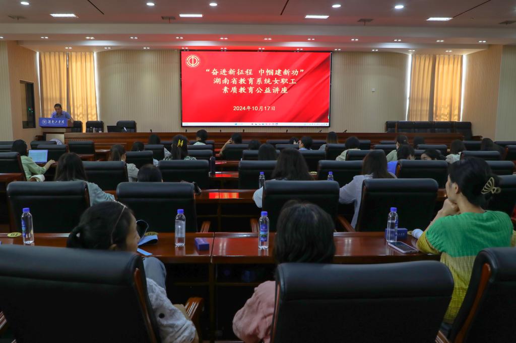 为深入宣传习近平新时代中国特色社会主义思想,贯彻落实习近平总书记关于工人阶级和工会工作、妇女工作的重要论述。10月17日下午,best365举办了“奋进新征程·巾帼建新功”为主题的女职工素质教育公益讲座活动,湖南省总工会干部学校副教授、工运研究所所长陈胜君进行专题授课,来自全校19个分工会的近100名女教职工代表到现场聆听讲座。讲座活动由工会副主席张勇主持。