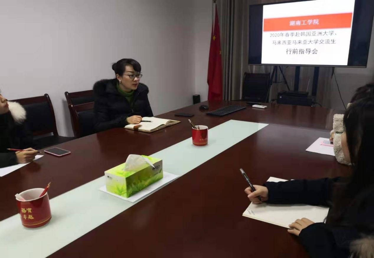 为帮助赴外交换生更好地适应国外交换生活,完善行前准备,20191218日,国际合作交流处召开2020年春赴国外交换生行前教育会。会上,国际教育学院副院长彭艳祝贺全体交流学生获得海外学习的宝贵机会,就交换生的校内手续办理、境外学习生活、人身安全、政治纪律、外事纪律、安全防范、礼仪礼节、跨文化沟通等交换生活的各个方面展开指导和必要的思想教育。并给予学生们有关出国前各项准备和出国期间注意事项的指导, 要求在行前要做好知识、语言、技能三方面的准备。特别强调出国期间所有学生务必做到:一、树立安全意识,团结互助,保护好自身和财产安全,定期与家人和学校报平安;二、把握原则,遵守法律法规和校规校纪,注意言行和仪态仪表,提高政治站位和国家安全意识,展示具备良好素质的中国大学生形象;三、以学为主、拓宽视野、独立自主、积极进取,做一名学有所成的大学生。最后,彭艳提出三点希望:一、多学习、多思考、多展才。二、守好学生本分,带着文化自信去学习他国文化知识,融入自己的观察和思考,提高自己,多多在国际舞台展示自己,充实交流生活。三、在国外讲好中国故事、湖工故事,展示新时代大学生风貌。