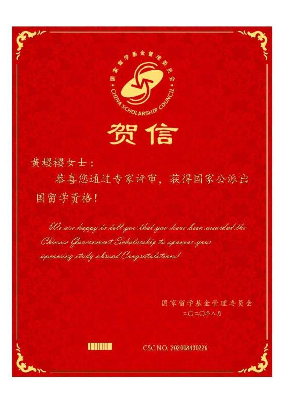 喜讯:best365两名教师获得2020年国家留学基金委地方项目资助