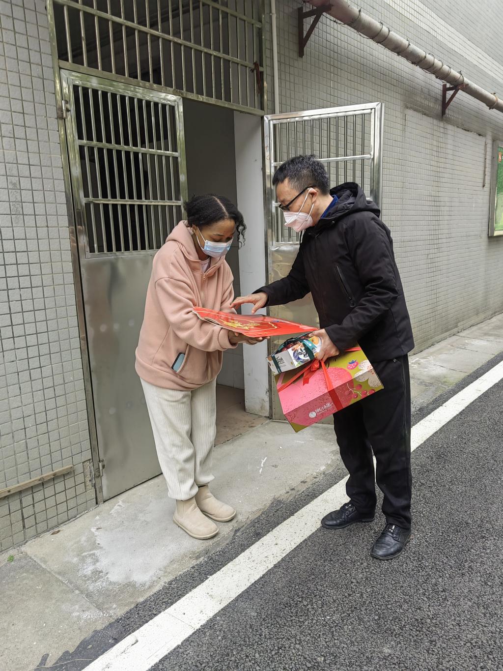 新春佳节来临之际,1月21日是中国传统大年三十,当天下午国际合作交流处处长兼国际教育学院院长陆秀令来到外教公寓,走访看望假期留校外教,了解外教假期留校期的工作和生活情况,向外教介绍中国春节由来、中国春节习俗,向外教致以新春的问候与祝福,并送上春联和水果等节日礼品。留校外教表示,虽然身在异国他乡,不能回国和家人团聚,但学校送来的深情牵挂和春节礼物让他们倍感温暖、亲切和幸福,让他们真真正正感受中国传统文化的节日春节,领略中国文化习俗的魅力,感受湖工这个大家庭的温暖。(文/王扬子,一审/邹莉 ,二审/彭艳 ,三审/陆秀令)