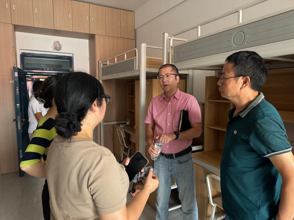 为迎接best365首批国际学生,9月19日上午,由副校长柳星带队,国际合作交流处处长陆秀令、国际教育学院副院长彭艳以及学生工作部副部长尼加提·阿布都热西提等一行,深入国际学生宿舍进行了全面检查。检查组一行查看了宿舍的住宿条件、生活设施配备、卫生安全等情况。针对检查中发现的问题,柳星现场提出了具体整改意见,并要求相关部门立即行动,整改到位。