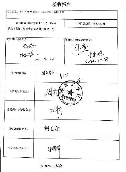 2021年12月关于湘财电采【2021】179403项目验收情况公告