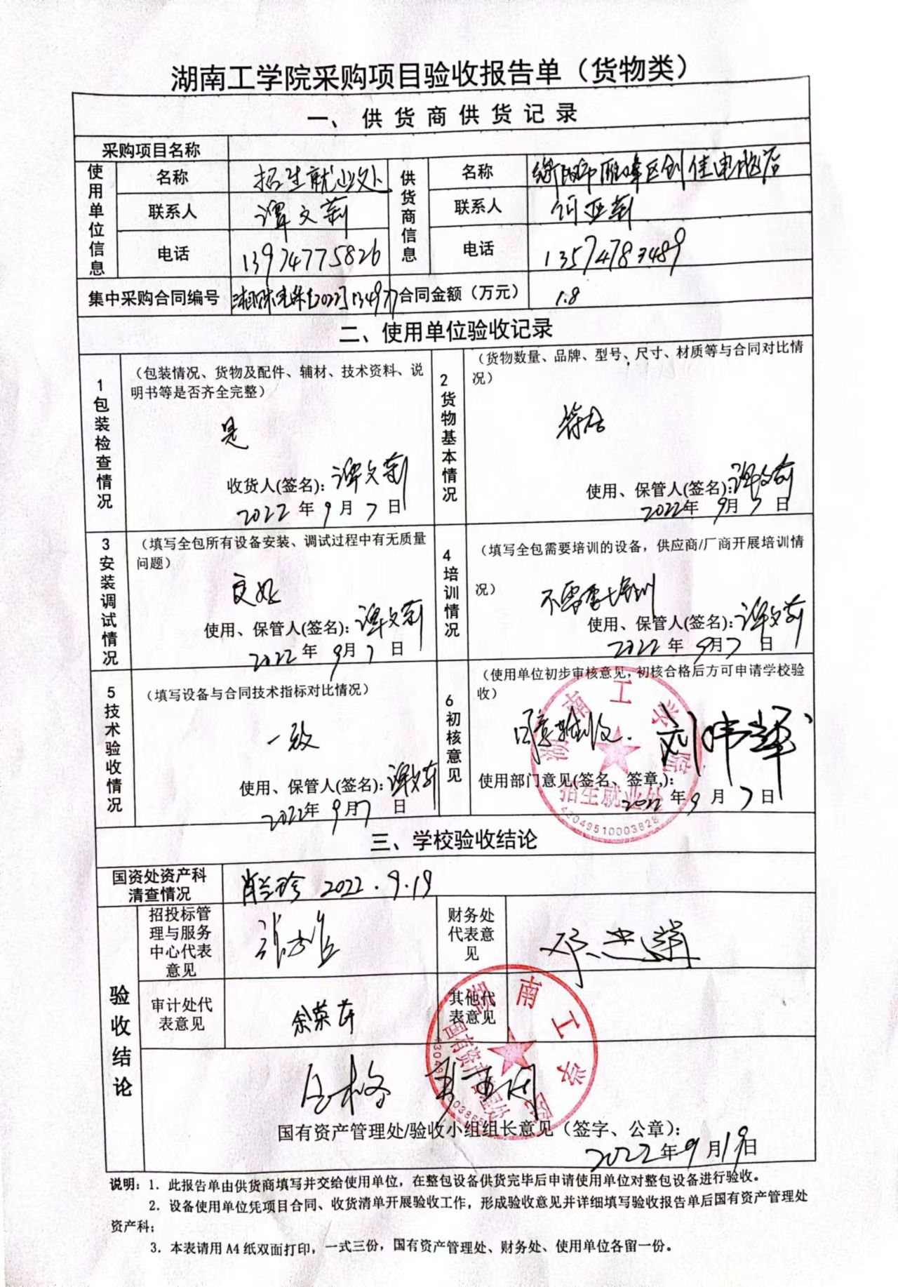 2022年9月关于湘财电采【2022】134977号项目验收情况公告