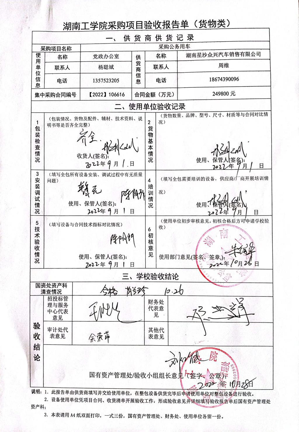2022年10月关于湘财电采【2022】106616号项目验收情况公告