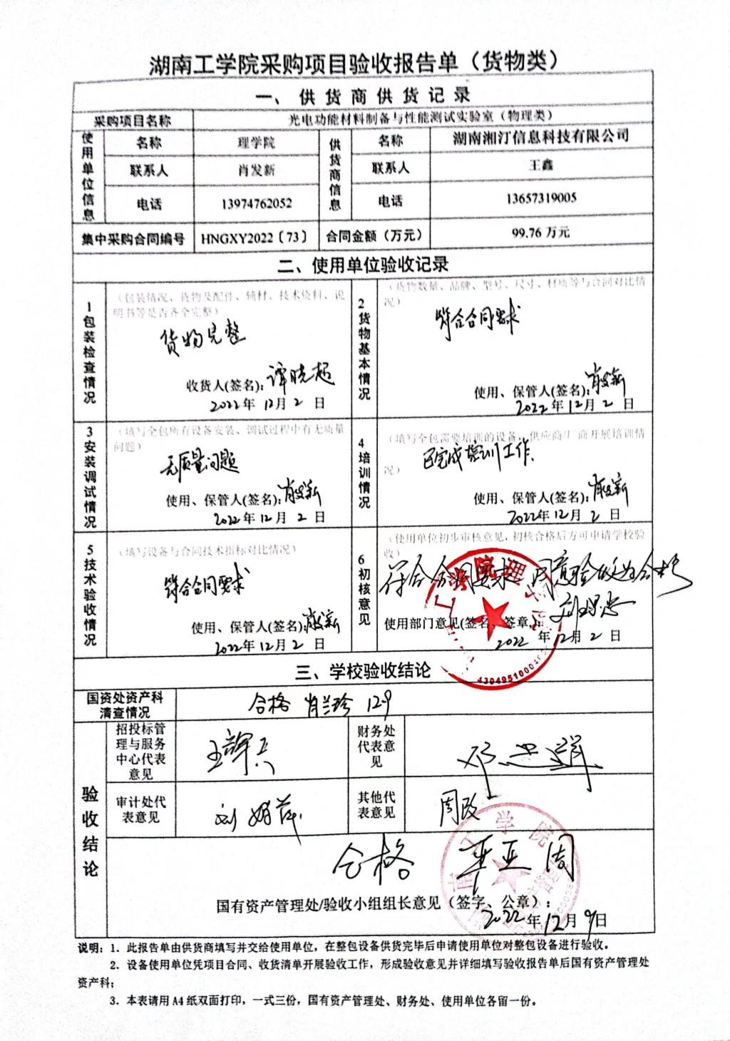 根据国有资产管理处对采购项目的验收安排,2022年12月9日国有资产管理处组织招投标管理与服务中心、审计处、财务处、学科建设与发展规划处以及使用部门代表对供应商的货品进行现场验收。