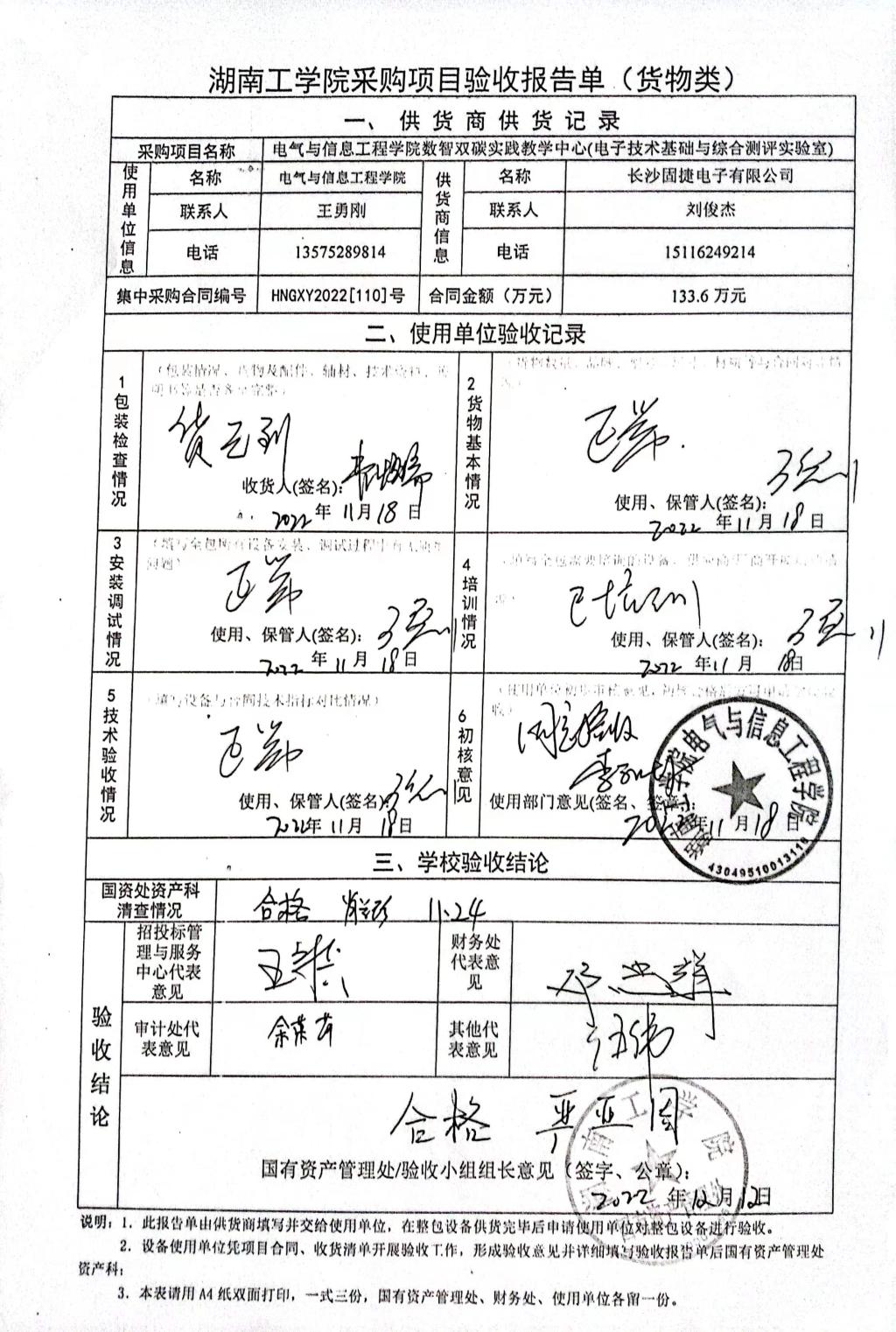 2022年11月关于HNGXY2022【110】号 购字2022【65】号采购项目验收情况公告