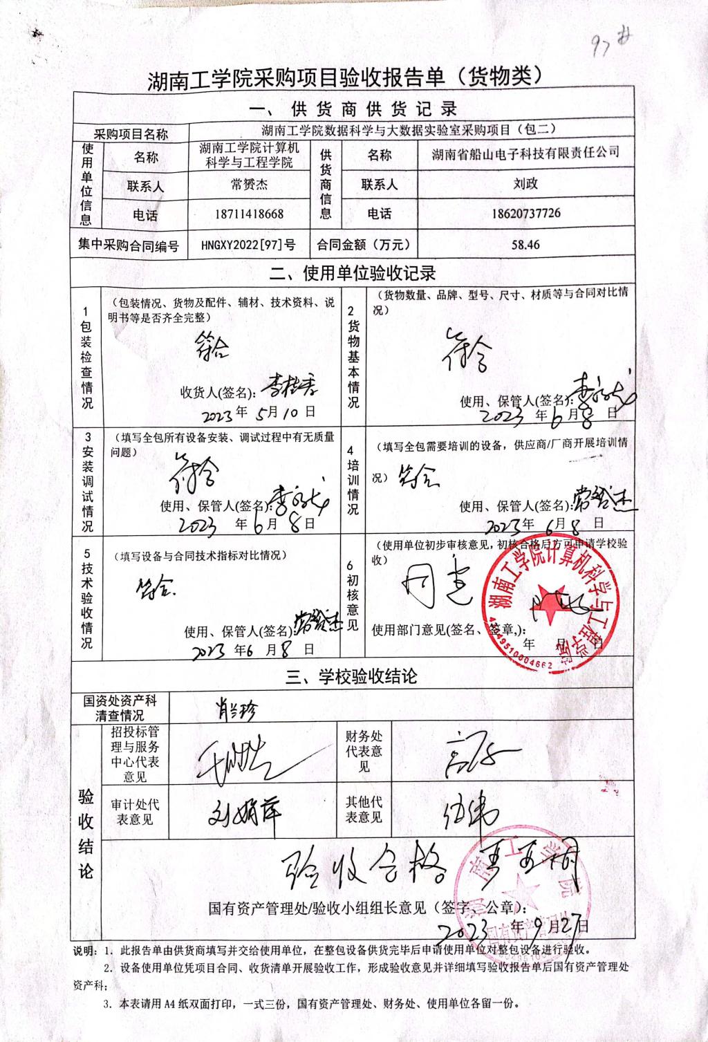 2023年9月关于HNGXY2022【97】号 购字2022【53】号采购项目验收情况公告