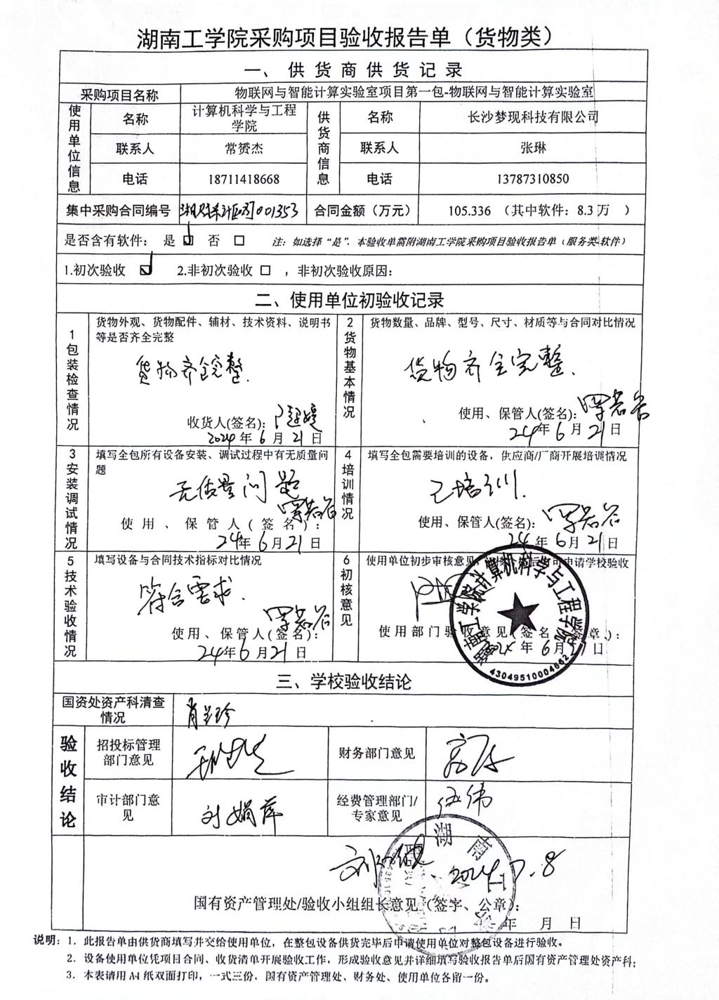 2024年6月关于湘财采计【2023】001353号项目验收情况公告