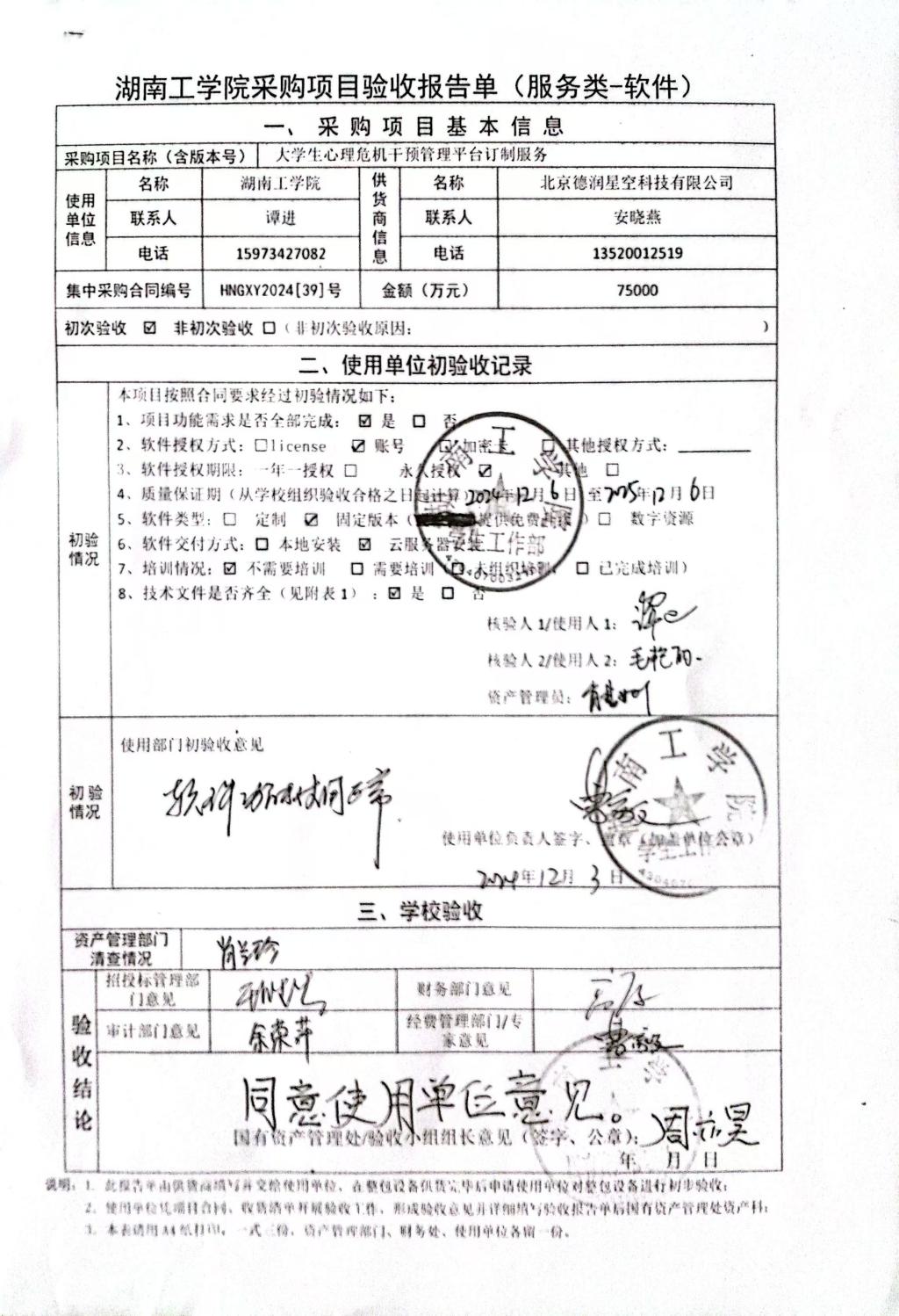 2024年12月关于HNGXY2024【39】号 协字2024【15】号采购项目验收情况公告