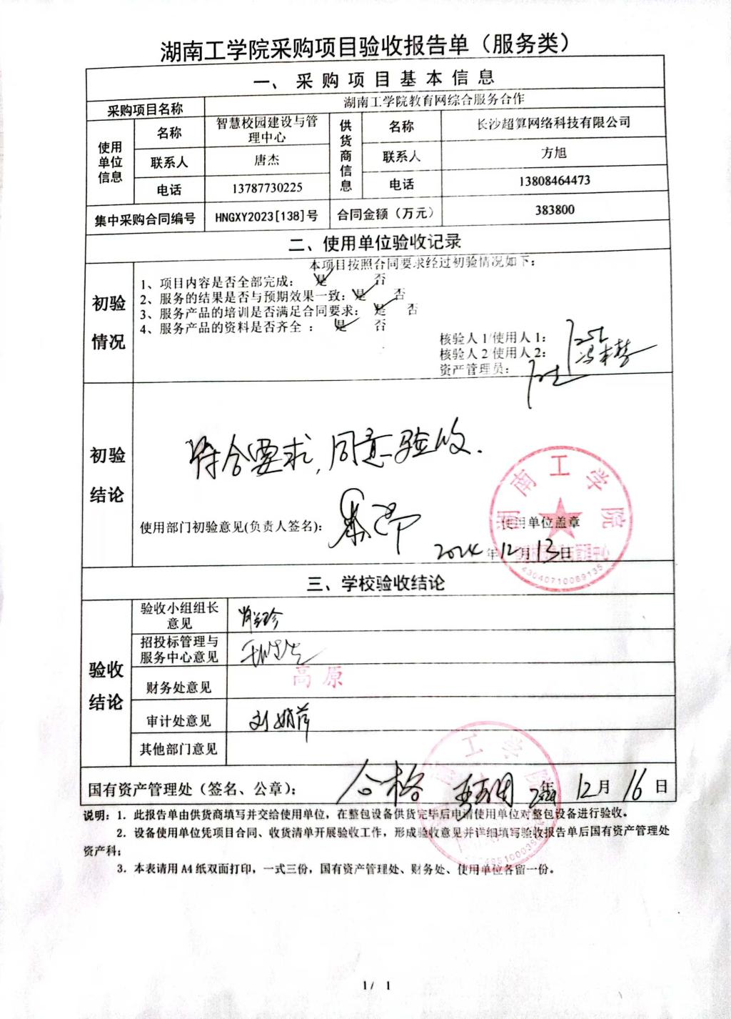 2024年12月关于HNGXY2024【138】号 购字2024【69】号采购项目验收情况公告