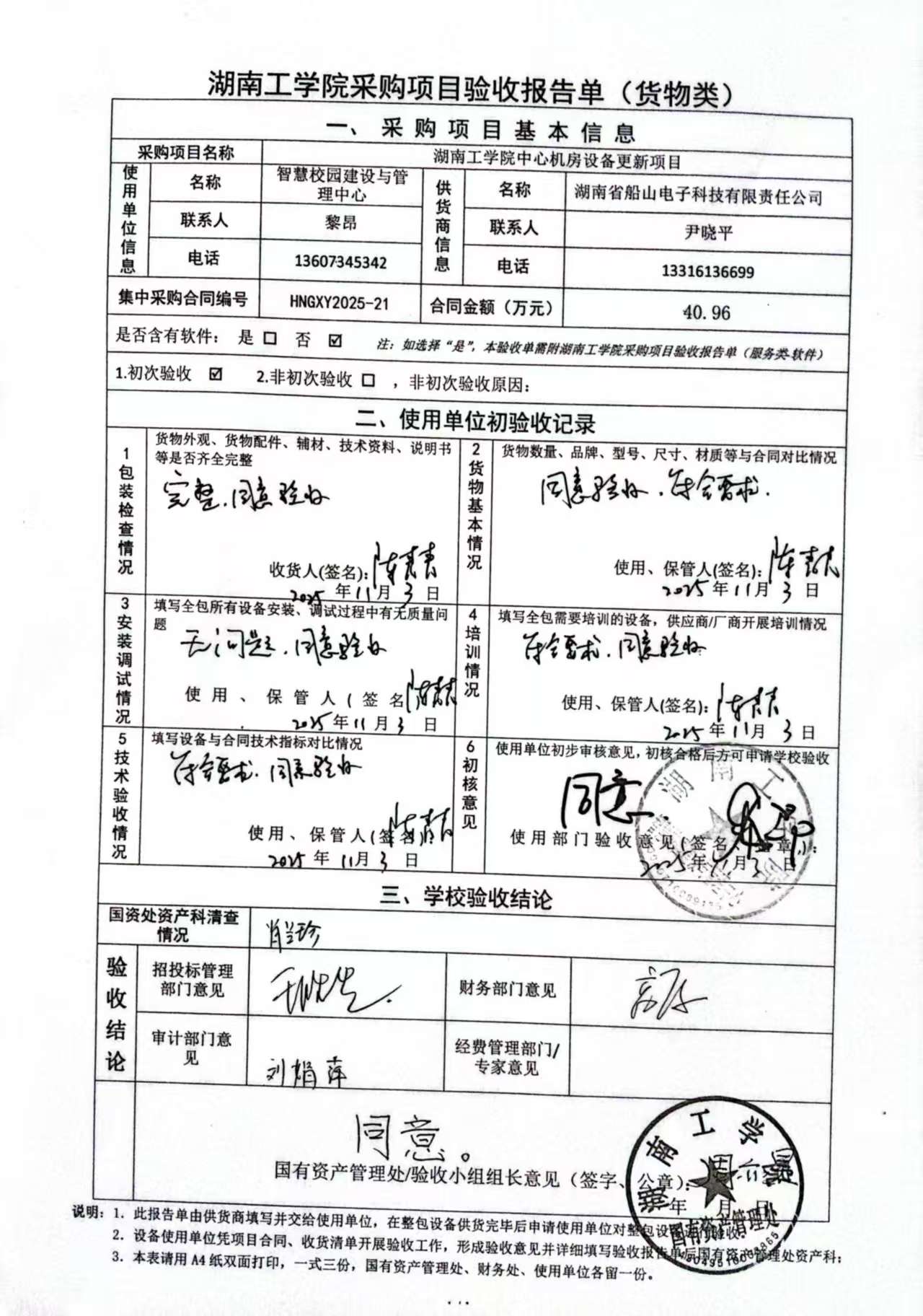 2025年11月关于HNGXY2025【50】号 购字2025【21】号采购项目验收情况公告