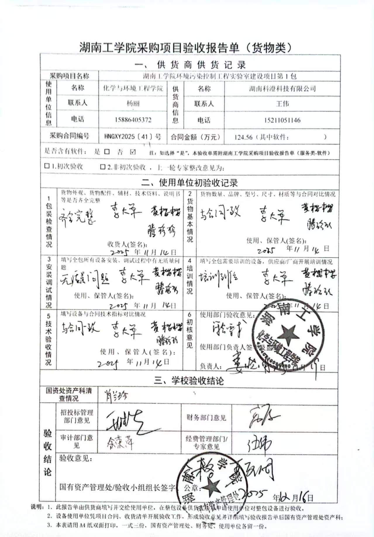 2025年12月关于HNGXY2025【41】号 购字2025【17】号采购项目验收情况公告