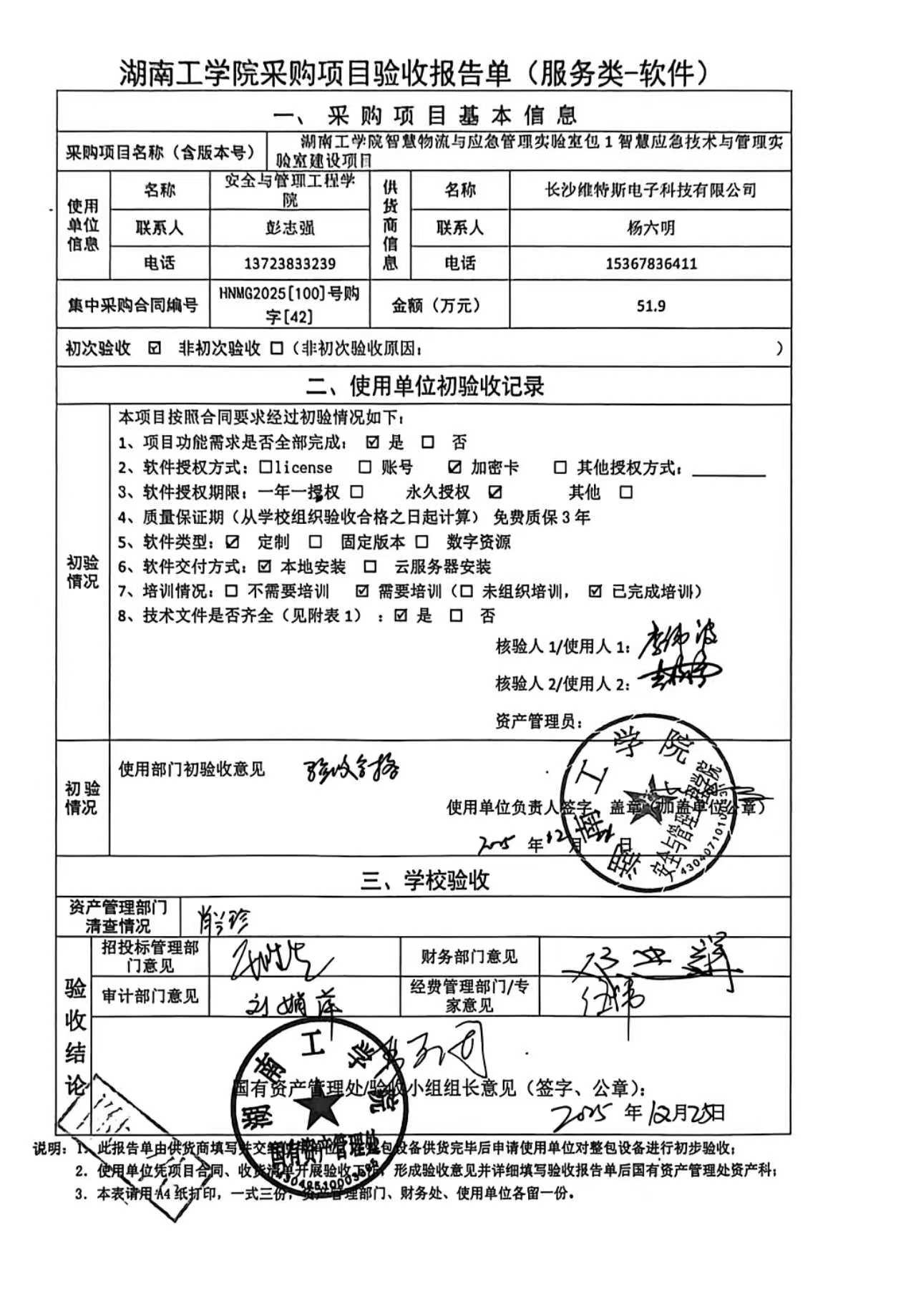 2025年12月关于HNGXY2025【100】号 购字2025【42】号采购项目验收情况公告