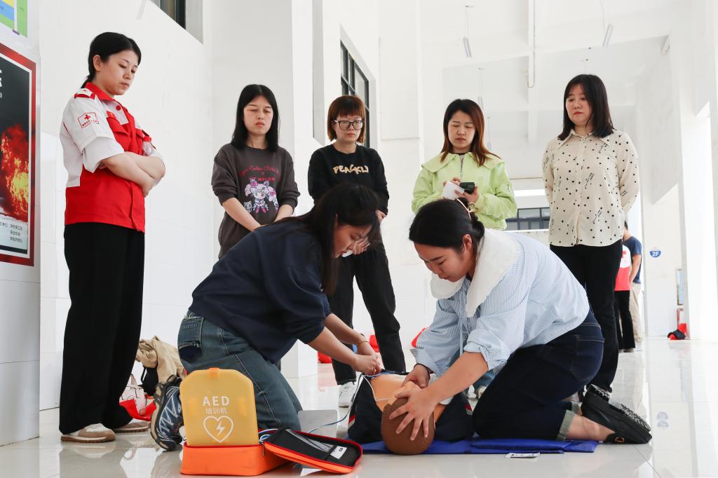 在实践考试环节中,学员们分组进行了模拟急救情景演练。在讲师的指导下,老师们学习了如何判断患者意识状态、呼叫急救电话、进行胸外按压和人工呼吸等关键步骤。分组演练后,学员们进行了一对一考试。