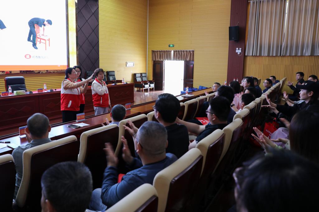 在明翰报告厅内,来自各部门的教职工共同参与了这次生命救援技能的学习。培训班由经验丰富的衡阳市红十字会专业讲师黄霞授课,她和授课团队不仅传授了包括心肺复苏的基础理论、操作流程、实操演练以及自动体外除颤器(AED)的使用方法等相关理论知识,还通过实际操作让学员们掌握了心肺复苏(CPR+AED)的正确操作方式。黄霞强调,心肺复苏是一项可以在紧急情况下挽救生命的技能,每个人都应该学会并能够在必要时施以援手。